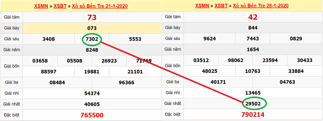 Ví dụ: Kết quả đài Bến Tre hôm nay về giải 7 là 101, số giữa các GĐB của 3 tỉnh mở thưởng là 07 – Bến Tre, 23 – Vũng Tàu, 56 – Bạc Liêu.