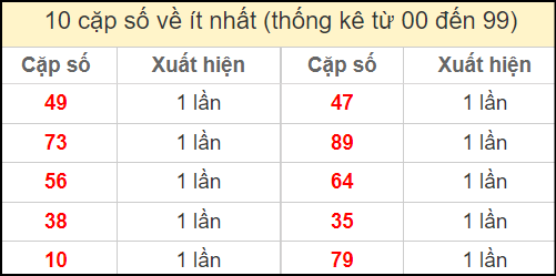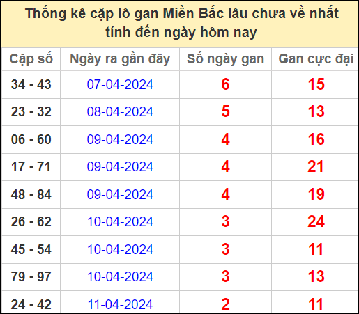 ⚡ Thống kê cặp số lâu chưa ra: 34 – 43, 23 – 32, 06 – 60