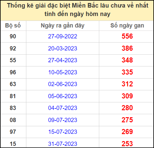 ⚡ Thống kê gan giải đặc biệt lâu về nhất hôm nay: 90 – 92 – 55 – 96 – 63