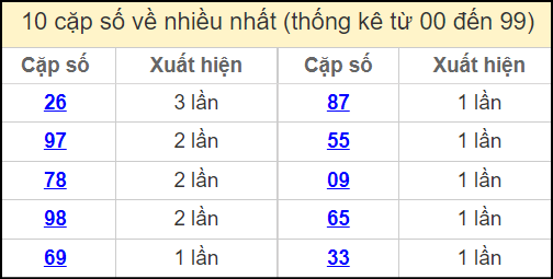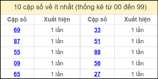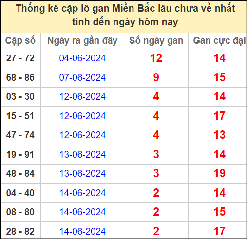 ⚡ Thống kê cặp số lâu chưa ra: 27 – 72, 68 – 86, 03 – 30