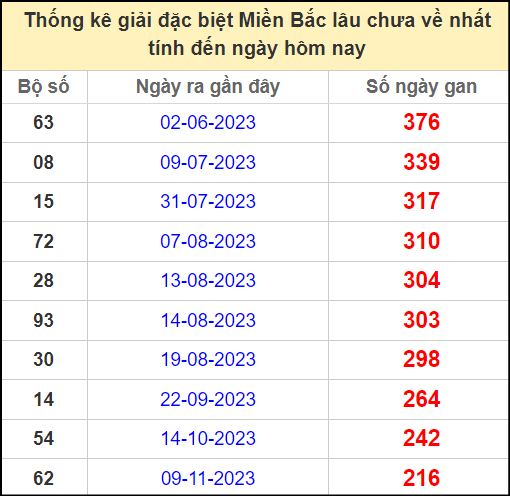 ⚡ Thống kê gan giải đặc biệt lâu về nhất hôm nay: 63 – 08 – 15 – 72 – 28