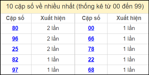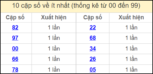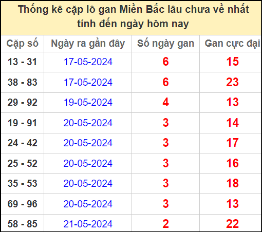 ⚡ Thống kê cặp số lâu chưa ra: 13 – 31, 38 – 83, 29 – 92