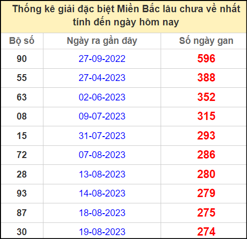 ⚡ Thống kê gan giải đặc biệt lâu về nhất hôm nay: 90 – 55 – 63 – 08 – 15