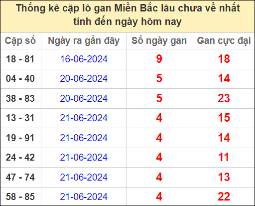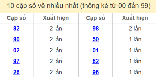 Những con số thống kê mới nhất trong 30 lần mở thưởng gần nhất, soi cầu lô đề miền Bắc (thống kê lô chơi nhiều nhất trong ngày, chu kỳ giải đặc biệt, thống kê lô gan, thống kê các bộ số xuất hiện ít nhất, tần suất lô) để bạn có thể chốt số. Từ những thống kê này người chơi sẽ có được kết quả soi cầu dự đoán giải đặc biệt ngày mai và lựa chọn ra đúng kết quả hôm nay ngày 26/6/2024.