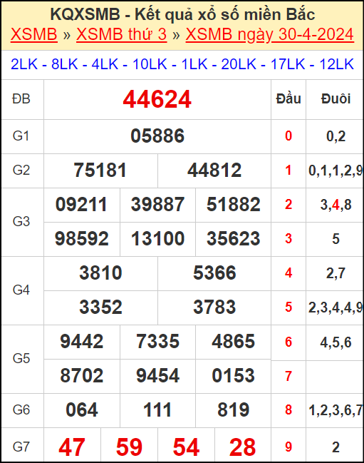 ⚡ Giải đặc biệt: 44624
