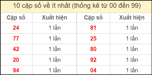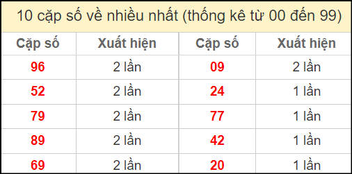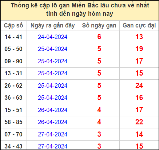 ⚡ Thống kê cặp số lâu chưa ra: 14 – 41, 05 – 50, 09 – 90