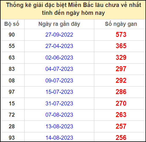 ⚡ Thống kê gan giải đặc biệt lâu về nhất hôm nay: 90 – 55 – 63 – 83 – 08