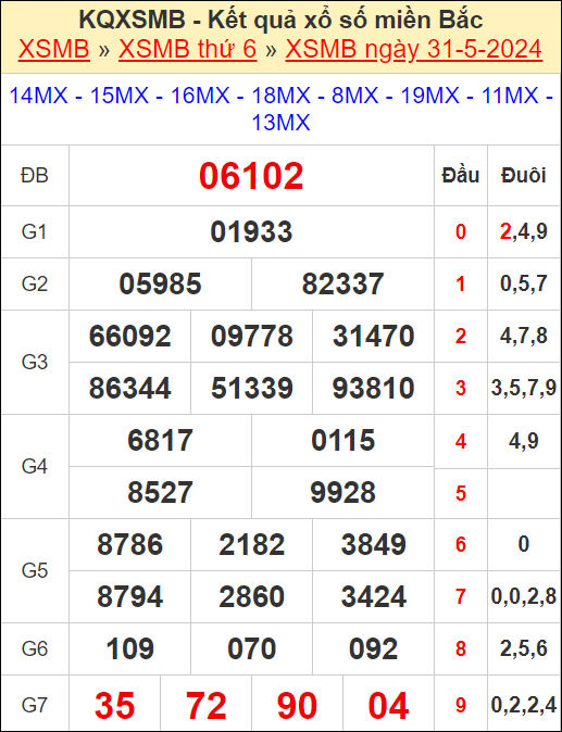 Những con số thống kê mới nhất trong 30 lần mở thưởng gần nhất, soi cầu lô đề miền Bắc (thống kê lô chơi nhiều nhất trong ngày, chu kỳ giải đặc biệt, thống kê lô gan, thống kê các bộ số xuất hiện ít nhất, tần suất lô) để bạn có thể chốt số. Từ những thống kê này người chơi sẽ có được kết quả soi cầu dự đoán giải đặc biệt ngày mai và lựa chọn ra đúng kết quả hôm nay ngày 1/6/2024.