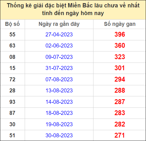 ⚡ Thống kê gan giải đặc biệt lâu về nhất hôm nay: 55 – 63 – 08 – 15 – 72