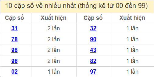 ⚡ Đuôi lô về nhiều nhất: 0 – 2