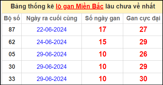Thống kê lô gan miền Bắc lâu chưa về nhất 10/7/2024