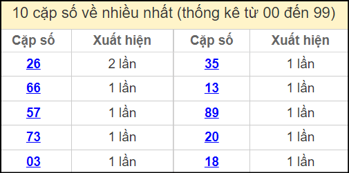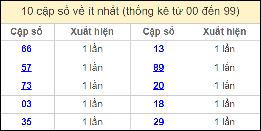 Thống kê lô cặp miền Bắc lâu chưa về 10/7/2024