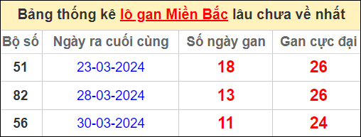 ⚡ Thống kê lô khan lâu chưa về: 51 – 82 – 56