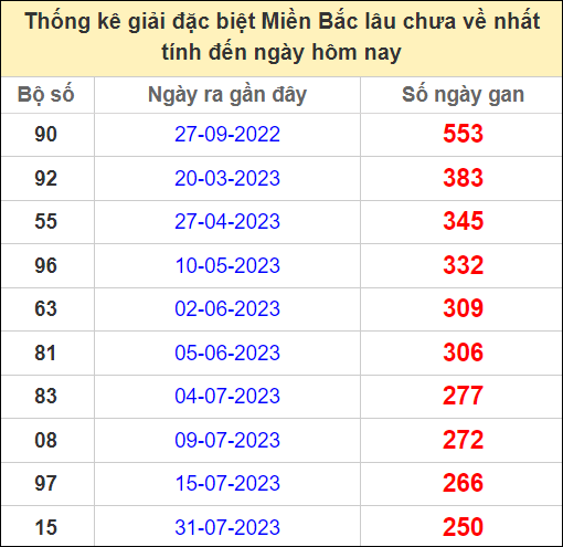 ⚡ Thống kê gan giải đặc biệt lâu về nhất hôm nay: 90 – 92 – 55 – 96 – 63