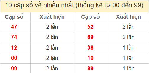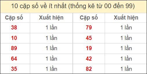 ⚡ Thống kê cặp số lâu chưa ra: 28 – 82, 19 – 91, 29 – 92