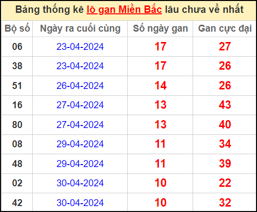 ⚡ Thống kê lô khan lâu chưa về: 06 – 38 – 51 – 16 – 80