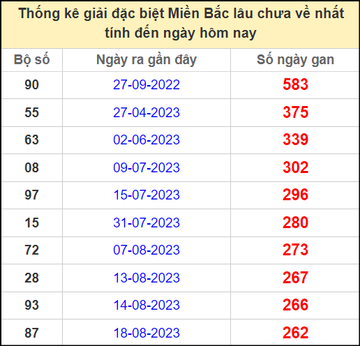 ⚡ Thống kê gan giải đặc biệt lâu về nhất hôm nay: 90 – 55 – 63 – 08 – 97