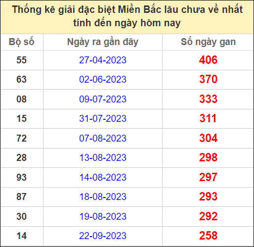 ⚡ Thống kê gan giải đặc biệt lâu về nhất hôm nay: 55