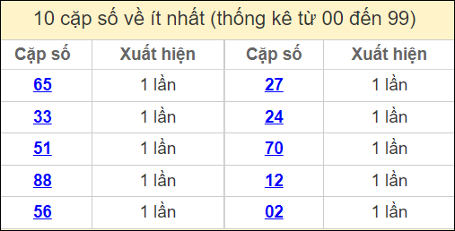 ⚡ Thống kê cặp số lâu chưa ra: 27 – 72, 13 – 31, 45 – 54