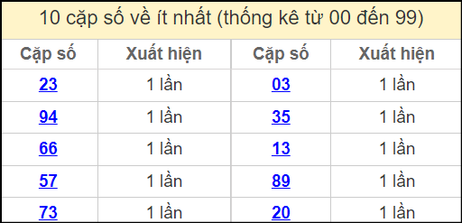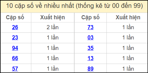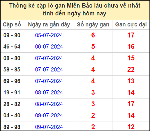 ⚡ Thống kê cặp số lâu chưa ra: 09 – 90, 46 – 64, 08 – 80
