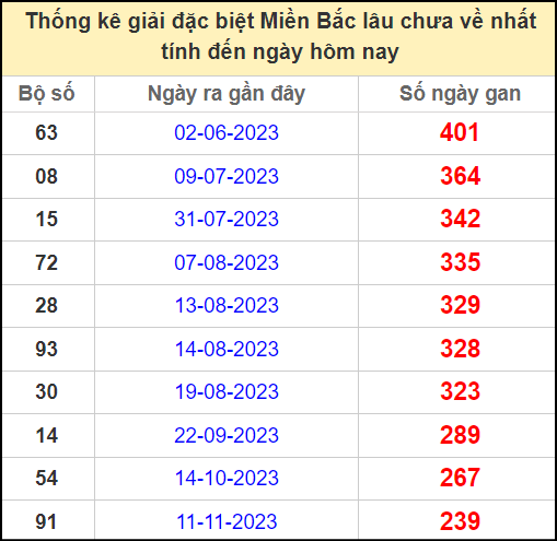 ⚡ Thống kê gan giải đặc biệt lâu về nhất hôm nay: 63 – 08 – 15 – 72 – 28