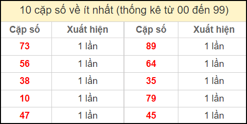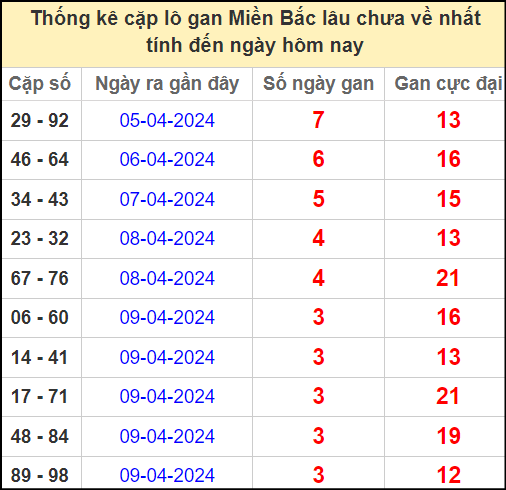 ⚡ Thống kê cặp số lâu chưa ra: 29 – 92, 46 – 64, 34 – 43