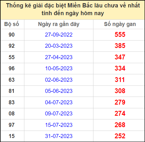 ⚡ Thống kê gan giải đặc biệt lâu về nhất hôm nay: 90 – 92 – 55 – 96 – 63