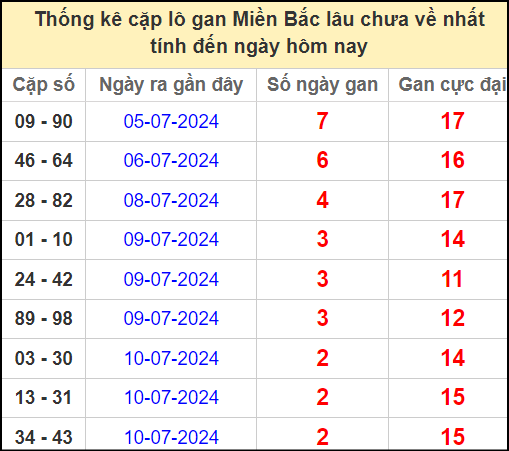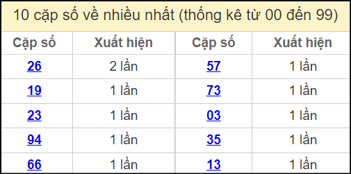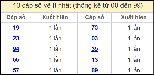 ⚡ Thống kê cặp số lâu chưa ra: 09 – 90, 46 – 64, 28 – 82