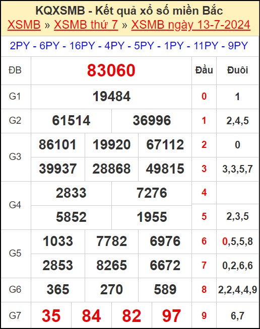 Những con số thống kê mới nhất trong 30 lần mở thưởng gần nhất, soi cầu lô đề miền Bắc (thống kê lô chơi nhiều nhất trong ngày, chu kỳ giải đặc biệt, thống kê lô gan, thống kê các bộ số xuất hiện ít nhất, tần suất lô) để bạn có thể chốt số. Từ những thống kê này người chơi sẽ có được kết quả soi cầu dự đoán giải đặc biệt ngày mai và lựa chọn ra đúng kết quả hôm nay ngày 14/7/2024.
