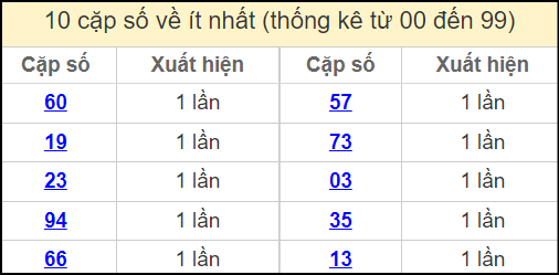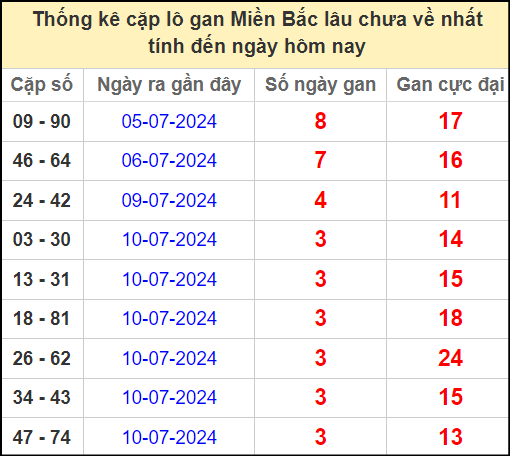 ⚡ Thống kê cặp số lâu chưa ra: 09 – 90, 46 – 64, 24 – 42