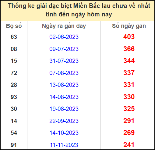 ⚡ Thống kê gan giải đặc biệt lâu về nhất hôm nay: 63 – 08 – 15 – 72 – 28