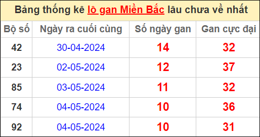 Thống kê lô gan miền Bắc lâu chưa về nhất 15/5/2024