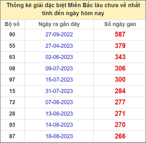 Thống kê gan giải đặc biệt miền Bắc lâu chưa về 15/5/2024