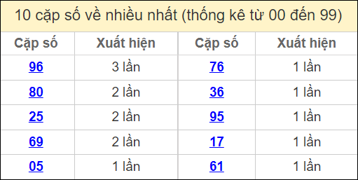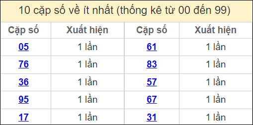 ⚡ Thống kê cặp số lâu chưa ra: 79