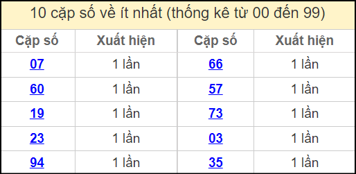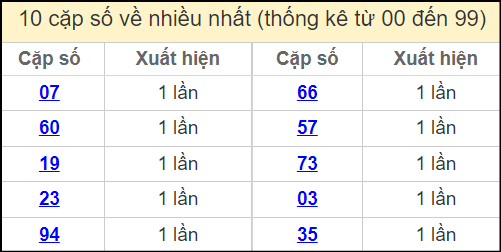 ⚡ Thống kê cặp số lâu chưa ra: 46 – 64, 03 – 30, 34 – 43