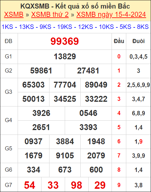 ⚡ Giải đặc biệt: 99369