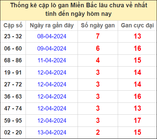 Những con số thống kê mới nhất trong 30 lần mở thưởng gần nhất, soi cầu lô đề miền Bắc (thống kê lô chơi nhiều nhất trong ngày, chu kỳ giải đặc biệt, thống kê lô gan, thống kê các bộ số xuất hiện ít nhất, tần suất lô) để bạn có thể chốt số. Từ những thống kê này người chơi sẽ có được kết quả soi cầu dự đoán giải đặc biệt ngày mai và lựa chọn ra đúng kết quả hôm nay ngày 16/4/2024.