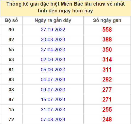 ⚡ Thống kê cặp số lâu chưa ra: 90 – 92 – 55 – 63 – 81