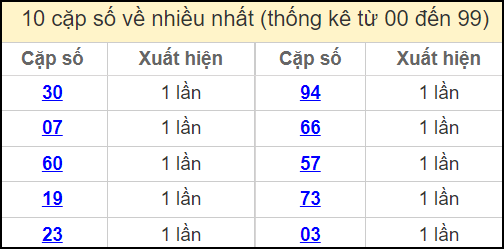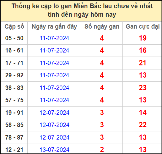 ⚡ Thống kê cặp số lâu chưa ra: 05 – 50, 16 – 61, 17 – 71