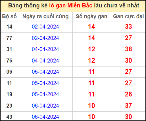 ⚡ Thống kê lô khan lâu chưa về: 14 – 77 – 31 – 76 – 06