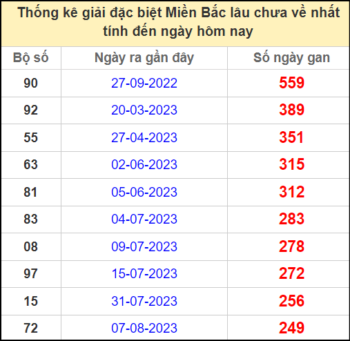 ⚡ Thống kê gan giải đặc biệt lâu về nhất hôm nay: 90 – 92 – 55 – 63 – 81