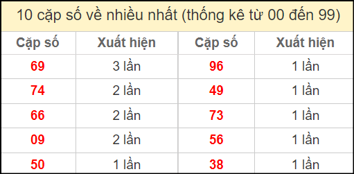 ⚡ Thống kê cặp số lâu chưa ra: 23 – 32, 06 – 60, 47 – 74
