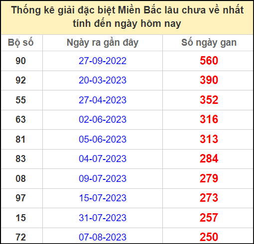 ⚡ Thống kê gan giải đặc biệt lâu về nhất hôm nay: 90 – 92 – 55 – 63 – 81