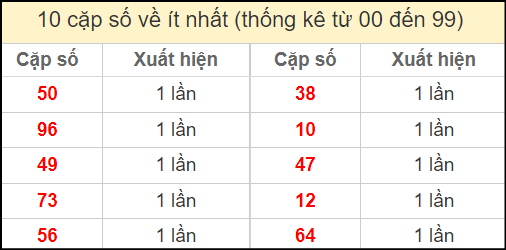 ⚡ Thống kê cặp số lâu chưa ra: 23 – 32, 59 – 95, 02 – 20