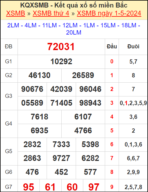 ⚡ Giải đặc biệt: 72031