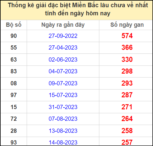 ⚡ Thống kê gan giải đặc biệt lâu về nhất hôm nay: 90 – 55 – 63 – 83 – 08