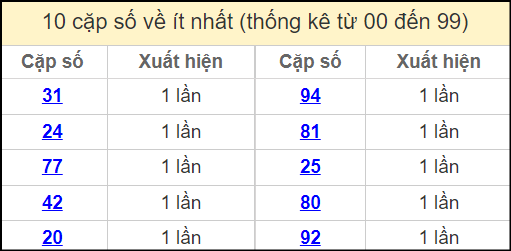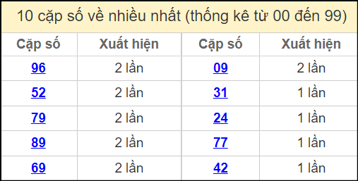 ⚡ Thống kê cặp số lâu chưa ra: 14 – 41, 09 – 90, 26 – 62