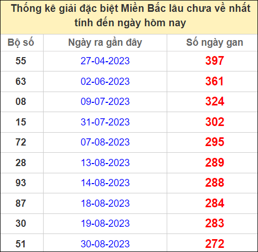 ⚡ Thống kê gan giải đặc biệt lâu về nhất hôm nay: 55 – 63 – 08 – 15 – 72