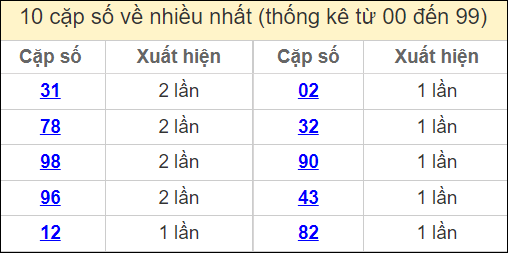 Những con số thống kê mới nhất trong 30 lần mở thưởng gần nhất, soi cầu lô đề miền Bắc (thống kê lô chơi nhiều nhất trong ngày, chu kỳ giải đặc biệt, thống kê lô gan, thống kê các bộ số xuất hiện ít nhất, tần suất lô) để bạn có thể chốt số. Từ những thống kê này người chơi sẽ có được kết quả soi cầu dự đoán giải đặc biệt ngày mai và lựa chọn ra đúng kết quả hôm nay ngày 2/6/2024.