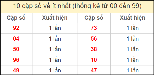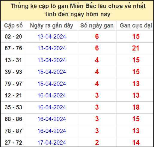 ⚡ Thống kê cặp số lâu chưa ra: 02 – 20, 67 – 76, 13 – 31